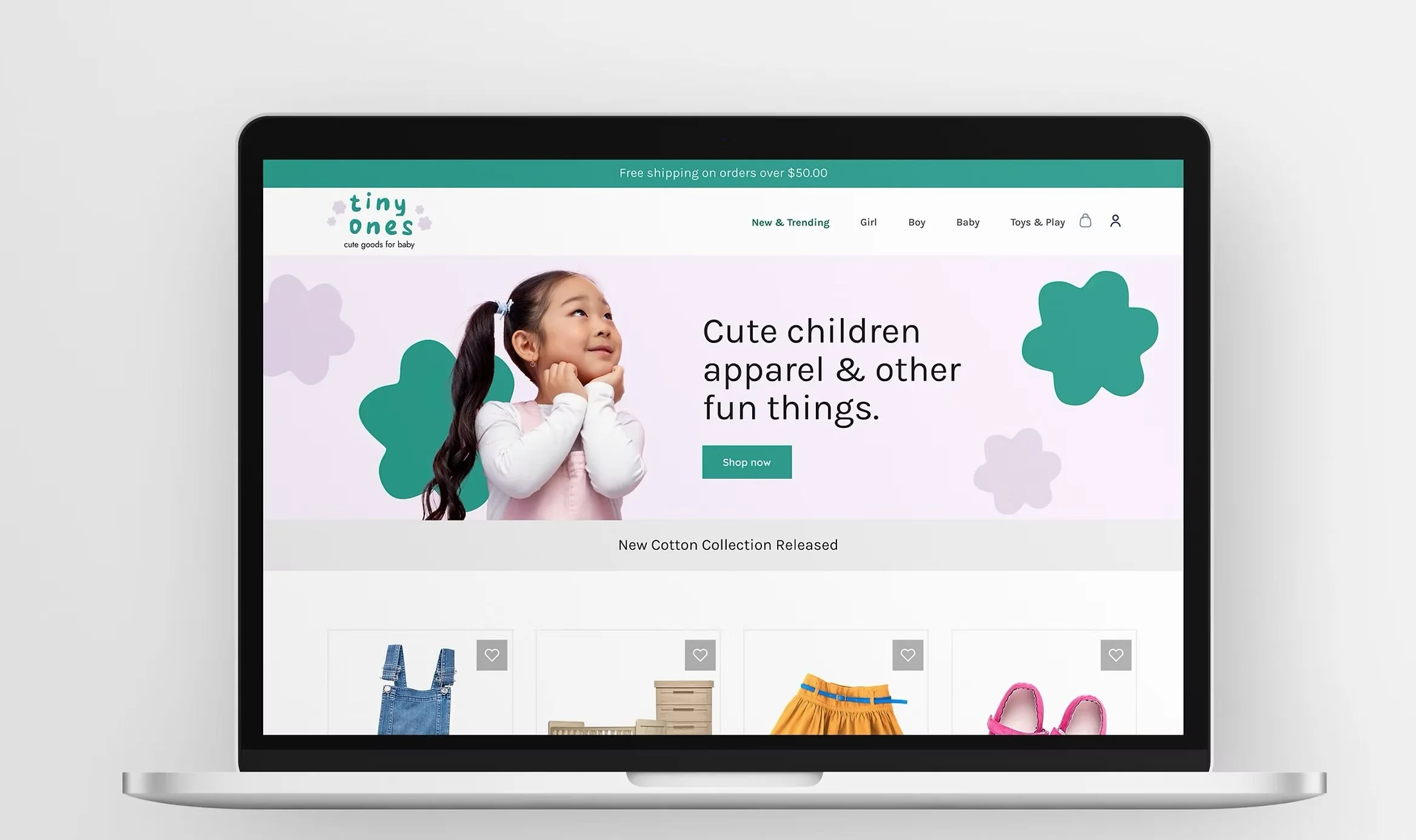 Tiny Ones is a playful baby brand offering cute, high-quality goods and clothing for little ones. From the soft, whimsical logo to the fresh and friendly website design, every detail was crafted to capture the brand’s warmth and charm.